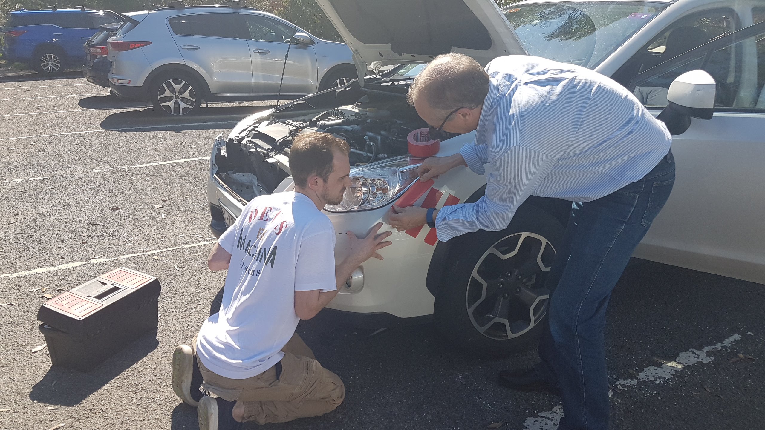 Detective: The car is drivable, but there are bits of plastic panel hanging off it.