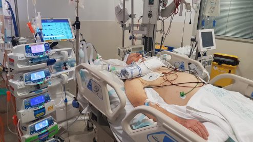 All manner of IV drips were plumbed in to give Don the best chance of recovery. A range of medicine for the heart, some pain relief, and maintenance saline solution. He was connected to a ventilator that topped up his breathing.