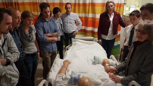The family comes in to say a final farewell. There are tears, hugs, smiles, and lots of silence. Everybody is so privileged to say farewell under these circumstances.
